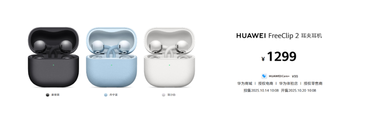 华为FreeClip 2 耳夹耳机2025年10月14日10:08开启预售,10月20日10:08正式开售,首发价格1299元配资平台app下载,用户可登陆华为商城及各大授权电商平台或前往华为体验店、华为授权零售门店进行购买。