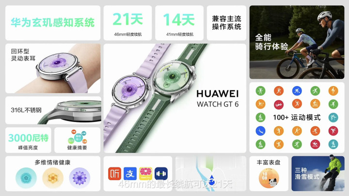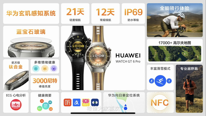 华为WATCH GT 6系列手表延续了高颜值设计,全新玄玑感知系统为运动,助力体征监测更快、更准、更全;全新华为向日葵定位导航系统,融合芯片、天线、算法的丰富技术成果,定位精准度提升20%,并新增海拔趋势功能。